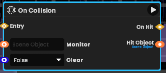 * **On Hit (▶️):** Fires each time the monitored object collides with another.