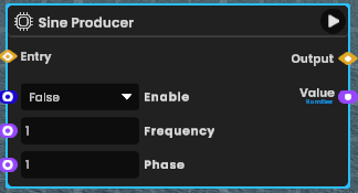 * **Sine Producer** outputs a looping sine-wave value (–1…1) at a given frequency and phase.