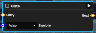* **Entry (▶️):** Send a trigger here (e.g., **On Start Event**) to toggle the node’s **Enable** state.