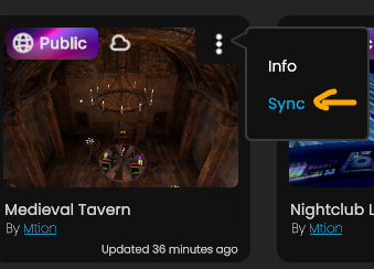In order to make a template into a editable World, you will need to first sync it to your local device. You can find the sync option by clicking on the 3 dots on the top right corner of a template card.