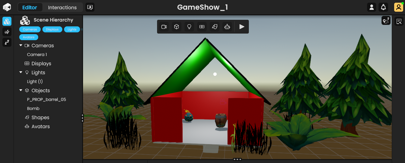 Build out the room again, just as above using the “Build Scene” button under the “Build” tab. If you enter mtion studio and create a new world using this updated room template, the world will include the newly added props.